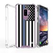 AquaFlex Hybrid Slim Transparent Clear Case Designed for Samsung Galaxy S9 Plus Thin Blue Line US Flag